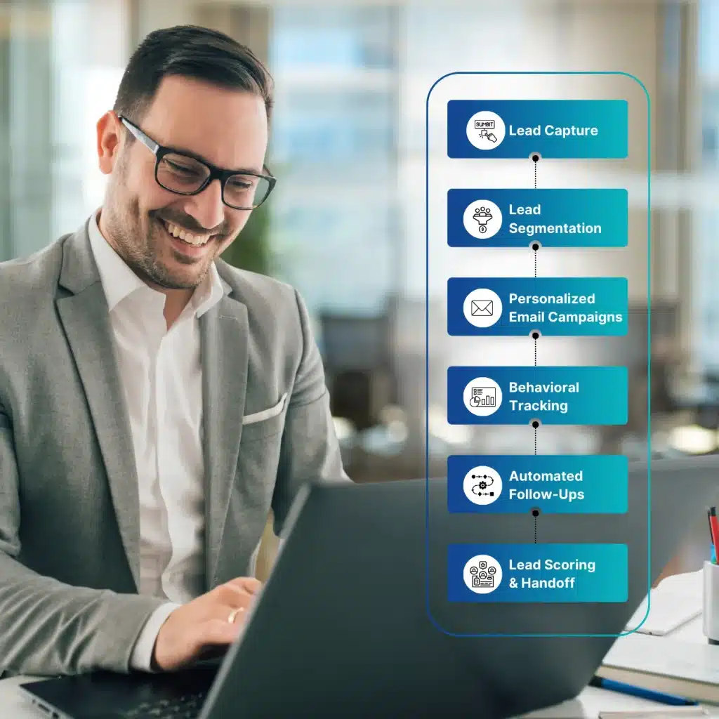 AI-powered chatbots engage with leads in real-time, answering queries, providing recommendations, and guiding users through decision-making.